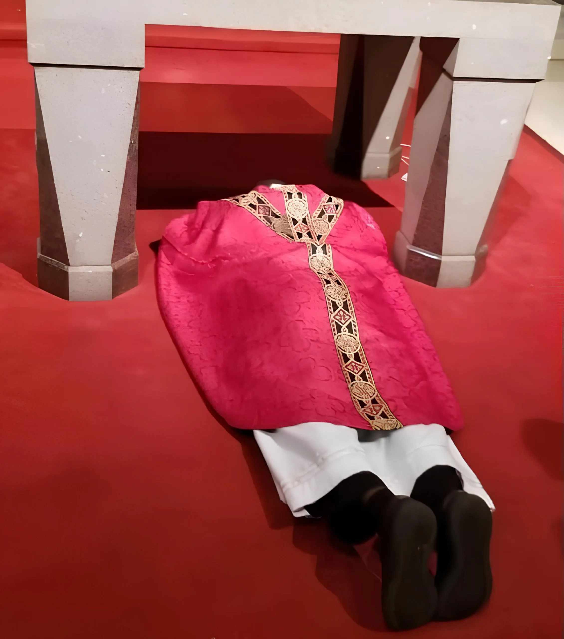 Dans l’Église primitive, l’agenouillement signifiait la pénitence. L’agenouillement était si profondément sacre et expressif que les premiers chrétiens n’avaient pas le droit de s’agenouiller les dimanches et pendant la période de Pâques, parce que l’esprit dominant de la Liturgie était un esprit de joie et d’action de grâce. Au Moyen-âge, l’agenouillement est devenu synonyme d’hommage, et plus récemment, cette posture est devenue synonyme d’adoration. Plus récemment, cette posture est devenue synonyme d’adoration, notamment devant la présence du Christ dans l’Eucharistie. C’est pour cette raison que bien des conférences épiscopales ont choisi la posture de l’agenouillement pour toute la prière eucharistique.