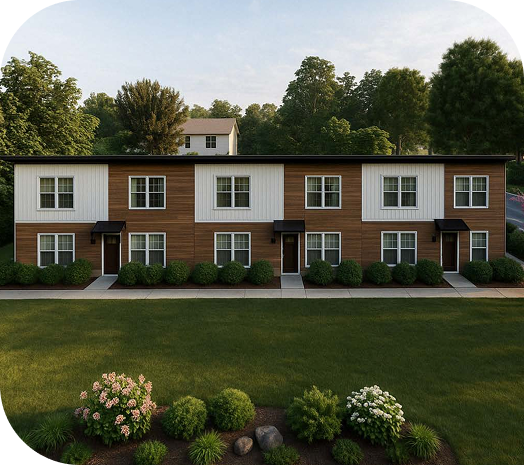 Our hybrid wall system locks carbon into the home’s structure, helping each build reduce CO₂ footprint compared to steel or concrete construction.